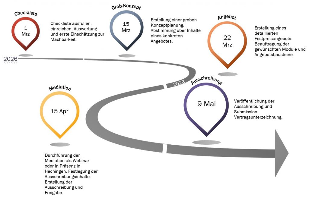 Zeitachse Planung + Ausschreibung eines Schulrestaurants in bestehenden Räumlichkeiten: